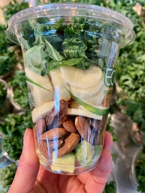 NOTE: Smoothies are kept in the freezer. TO PREPARE: Fill the cup with your favorite nut or oat milk (we love almond and coconut), allow to soften for 5 minutes. Empty contents into the blender and blend on high, until smooth. Enjoy! (Scroll to bottom of page for photos of each.)